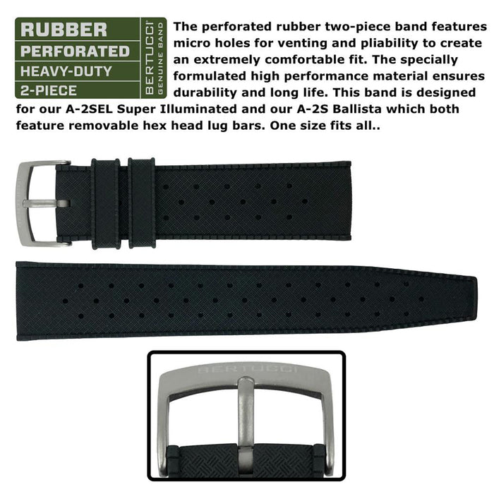 The Super Illuminated A-2SEL Watch from Bertucci is uniquely crafted with a dual lighting system that offers optimal visibility in any lighting condition. A composition of both an electroluminescent dial and Swiss Super Illuminated hands/markers set this watch head and shoulders above the competition. The dial shines warmly with an optically pleasing soft blue light while the luminous details offer layers of visibility not present in any other timepiece. Specifications: Case Material: Stainless Steel Durable screw down crown Scratch-resistant hardened mineral glass crystal Movement: Japanese quartz movement Active Comfort ergonomic 4 o'clock crown does not impinge wrist movement Dual Illumination System Button operated EL backlight to illuminate dial 12/24 hour markings dial Equipped with removable threaded 2 mm hex head lug bars LBI - Low Battery Indicator Water Resistance: 100 m Case Diameter: 40 mm Band Width: 22 mm