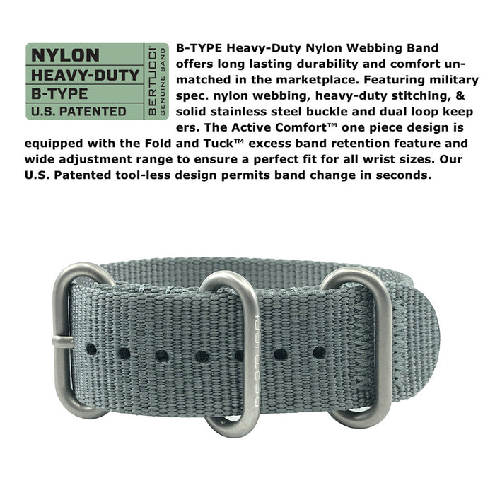 • Long-lasting U.S. Patented B-TYPE Heavy-Duty nylon webbing band with matching black ION hardware
