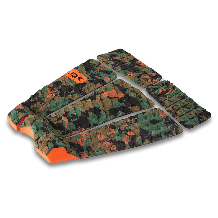Dakine Unisex Bruce Irons Pro Surf Olive Camo Traction Pad - 10003448-OLIVECAMO. Bruce Irons Pro Traction Pad features the custom arch and kick measurements used by Irons. This five-piece pad offers a 7mm center arch and a vert wedge 25mm tail kick with beveled edges. It features biodegradable foam and marine-grade 3M® adhesive to keep it in place. Will it make you surf like Irons? There's only one way to find out.