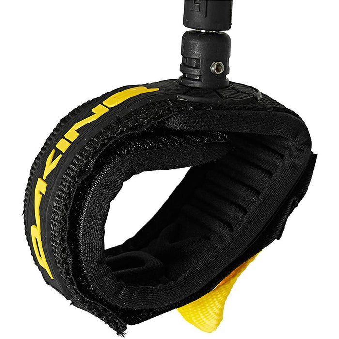 Dakine Unisex Kainui Black Surf Leash - 10002908-BLACK. This Kainui leash by Dakine is designed for waves with consequences - double to triple overhead. It features a 5/16" Dura-Cord urethane cord, 2" molded neoprene ankle cuff, and 1.5" detachable railsaver. 100% marine grade stainless steel swivels, Opti-Flex leash ends, and easy clip compatibility complete the design.