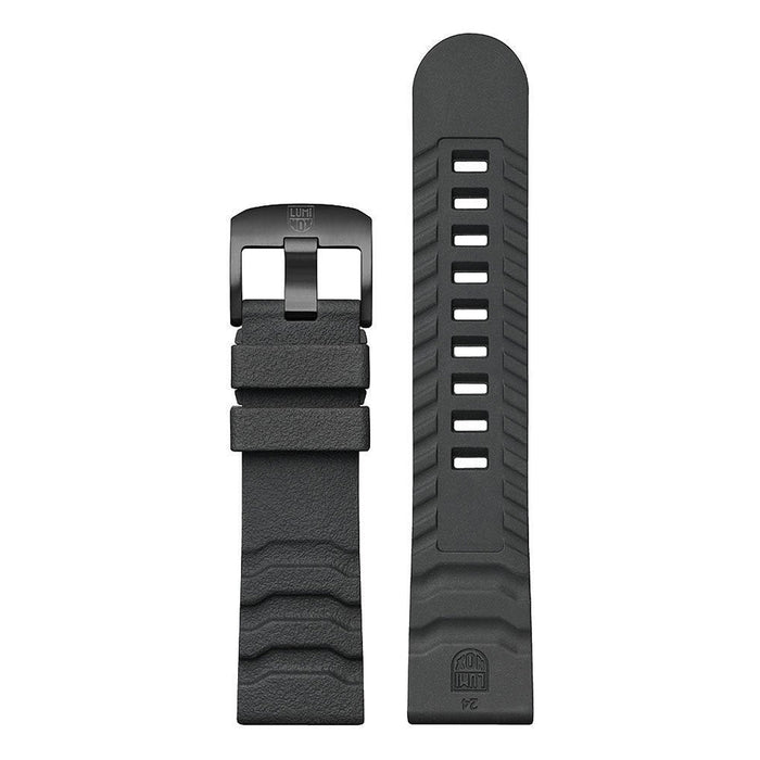 Luminox Men's Pacific Diver Series 3120 Black Rubber Watch Band - FPX.3800.21B.K. Luminox genuine replacement watch band comes in black color with stainless steel buckle. This 24 mm Rubber band design for long lasting durability well suited for the most severe environments and activities. The band features a stainless steel IP black brushed signature buckle and dual rubber loop-lock. Fits 3120 Pacific Diver Series.