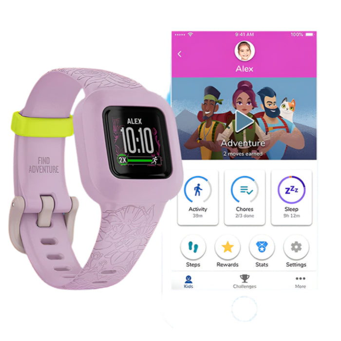 - Includes interactive app experience that lets kids go on a Garmin world tour; kiddos can uncover and tour exciting new places (requires Garmin jr. app loaded on parent’s compatible smartphone paired to vivofit jr. 3)