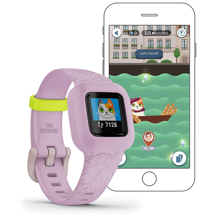 Garmin vivofit Fitness Tracker for Kids Swim Friendly Lilac Floral Silicone Band Smart Watch - 010-02441-21