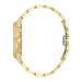 The Bulova Men's Silver Dial Gold Stainless Steel Band Analog Quartz Watch combines elegance and precision. The watch has a beautiful gold-tone stainless steel case and strap, giving it a refined design that is both robust and stylish. The silver dial is complemented with sleek gold-tone hour markings and hands, ensuring easy readability. This watch's quartz mechanism ensures precise timekeeping with minimal maintenance. The bracelet-style band's adjustable links and secure fold-over clasp ensure a snug fit. This Bulova watch's classic design and polished aesthetics make it suitable for both formal and everyday wear, bringing a touch of elegance to any outfit.