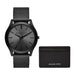 The Michael Kors Men's Slim Runway Gift Set will elevate your style. This stylish combination includes a sleek analog quartz watch with a stunning gray display and a black stainless steel band, which will lend a touch of refinement to any ensemble. The watch's basic design maintains a timeless appeal, while its sturdy stainless steel construction guarantees long-lasting wear. This gift set, which includes a matching wallet, blends functionality and high elegance, providing enough of space for essentials while retaining a streamlined profile. This package is ideal for any discriminating gentleman and makes a great present for special occasions or as a classy personal update. Michael Kors' exquisite ensemble combines elegance and accuracy.