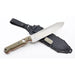 The White River Knives Firecraft F7 is designed for heavy use in serious survival situations. The deep finger choil gives your fingers a safe control point for heavy cutting and chopping and allows for fine control when making precise cuts. The top of the blade has a ferro rod notch and the handle boasts a polished stainless steel divot for fire bow use. The 7 inches CPM-S35VN premium stainless steel blade is wide for maximum utility in survival situations. The green Micarta handle scales have orange G10 liners which give it more visibility as well as deliver a superb look. The Kydex sheath comes with a dangler belt loop, a Ferro rod holder, and a ferro rod.