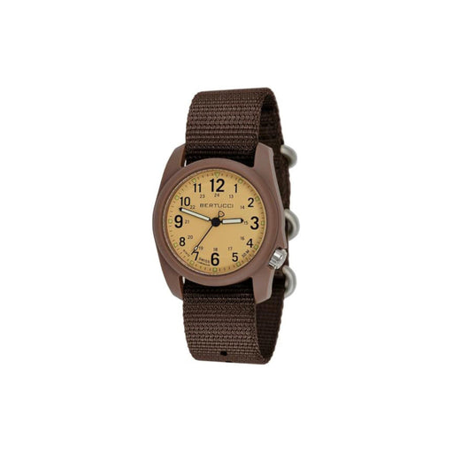 11130Bertucci DX3 Field Unisex Patrol Khaki Dial Brown Nylon Band Analog Japanese Quartz Watch The Bertucci DX3 Field Patrol watch is a tough and depen...