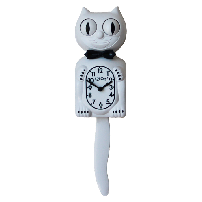 Kit Cat White Gentlemen Klock - BC-12BB. The famous Kit-Cat Klocks have been around for over 85 years now and have become an integral part of American history and the collective consciousness with their playful and catchy allure. Since the 1950s, the exterior appearance has remained the same, which is what makes all its charm, deliciously retro!These clocks are perfect to brighten up your home or office whether it is with the famous smile or the mechanism that moves the eyes and the tail of this clock, one thing is sure it leaves no one indifferent!
