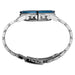 The perfect accessory for a stylish, sophisticated watch, this stainless steel bracelet is finished with a stainless steel case, making it resistant to rust and scratches. Pairing beautifully with any formal look, this stainless steel watch is an elegant style that can be worn day or night. A blue ring around the face provides an elegant and sophisticated look that will suit most attire. The silver-tone hands and index hour markers will ensure easy time reading throughout the day. Available in both men's and women's sizes, this essential timepiece is certain to become a longstanding staple for any stylish watch collection.