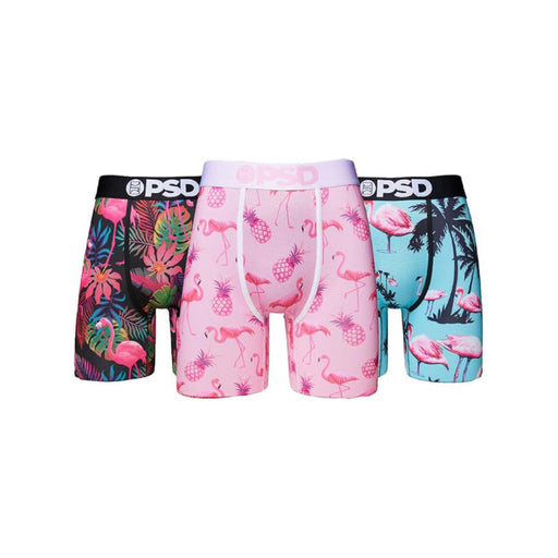 $65.00| /PSD Men's Multicolor Flamingo Jungle 3 Pack 7 Inch Inseam Moisture-Wicking 4-Way Stretch Boxer Briefs Medium Underwear - 122180081-MUL-M