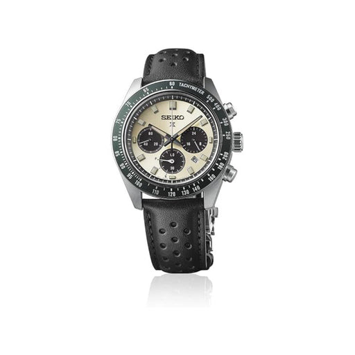 Original price $695.00Current price $556.00| /Seiko Prospex Speedtimer Men's Cream Dial Black Leather Band Analog Solar Watch - SSC943