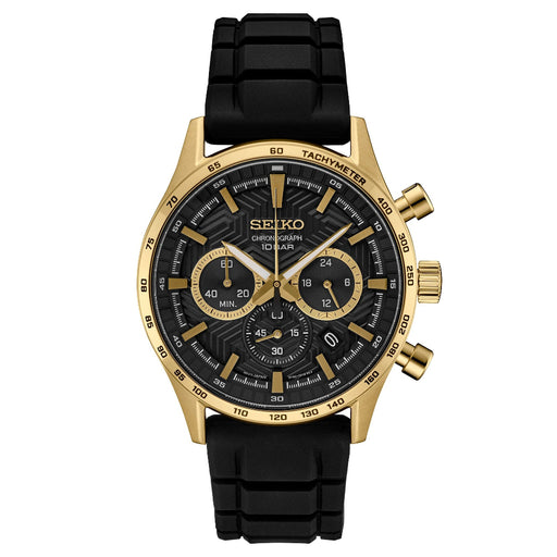 SSB446Seiko Essentials Collection Men's Black Dial Black Silicone Strap Chronograph Watch Seiko Essentials Collection Men's Black Dial Black Silicone Str...