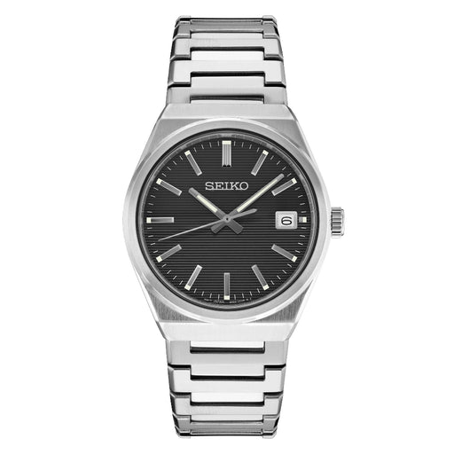 SUR557Seiko Men's Black Dial Silver-tone Stainless Steel Band Quartz Watch From the Essentials Collection. An updated classic, this sleekly angled watch ...