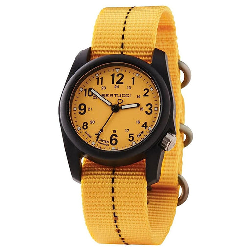 11120Bertucci DX3 Plus Unisex Yellow Dial Yellow with Black Dash Line Nylon Band Japanese Quartz Watch DX3 PLUS Watch is built with a U.S. patented fibe...