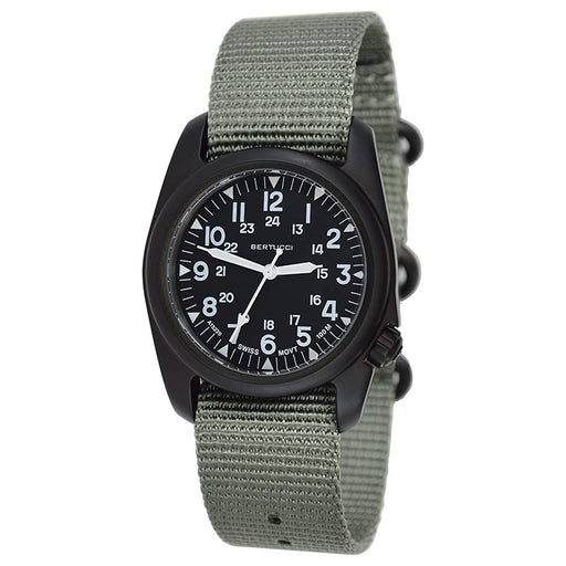 11512Bertucci A-2S Unisex Vintage Black Dial Defender Khaki Nylon Band Swiss Quartz Watch The A-2S Vintage Black dial is painstakingly authentic and fun...