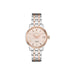 The Seiko Women's Pink Dial Rose-Gold Two-Tone Stainless Steel Band Automatic Watch is elegant and sophisticated. Its delicate pink dial with luminous hands and markers creates an elegant yet efficient design. The two-tone stainless steel case and bracelet, embellished with rose gold, exude luxury and are appropriate for both everyday and extraordinary occasions. This clock is driven by Seiko's precision automatic movement, which provides consistent performance without the need for a battery. With water resistance for added durability, this watch is the right combination of design and craftsmanship, making it an excellent choice for women who value timeless beauty and superb quality.