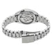 The Seiko Men's Green Dial Silver Stainless Steel Automatic Watch exemplifies sophisticated craftsmanship and timeless style. Its eye-catching green dial is complemented by luminous hands and indexes, offering maximum visibility in any light. This clock, powered by a sturdy automatic movement with a 41-hour power reserve and 24 jewels, provides smooth precision without the need for a battery. The robust stainless steel case and bracelet have a three-fold clasp with a push-button release for a secure fit. With a water resistance of 100 meters, a day/date display, and magnetic resistance of up to 4,800 A/m, this Seiko watch is designed for everyday performance and elegance. The transparent case back displays the delicate mechanical beauty.
