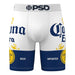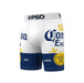 The PSD Men's Multicolor Corona Boxer Briefs in XX-Large provide an ideal balance of comfort and design. These boxer briefs feature a bright, tropical Corona-inspired design and are made of a soft, breathable microfiber fabric with 4-way stretch for optimal mobility. The wide, elastic waistband maintains a snug fit, while the 7-inch inseam and contoured zipped pouch add extra support. Ideal for everyday wear or resting in relaxed ease.