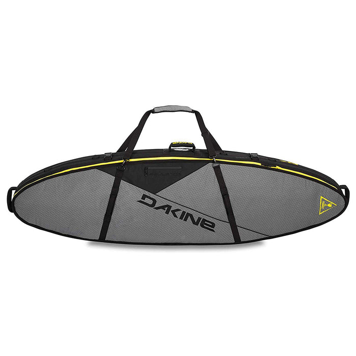 Dakine Regulator Surf Triple Carbon 6' Travel Surfboard Bag - 10002308-6.0-CARBON. Answer the call of travel with our Regulator Surfboard Bag. Designed to hold three boards this is your go-to protective travel bag. 3/8-inch foam padding cradles your boards while 3/4-inch foam sidewalls guard against the inevitable beatings of extended travel. Bomber ripstop exterior offers adventure travel durability and lightweight. A heat-reflective bottom guards from the hot sun on the roof rack and heavy-duty zippers go the distance. Internal fin and wax pockets keep you organized on the go.