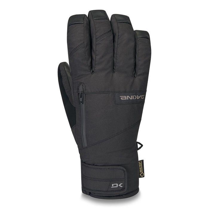 Dakine Unisex Black Leather Titan Gore-Tex Mitt X-Large Gloves - 10002533-BLACK-XL. The Dakine Leather Titan Gore-Tex Short Cuff Gloves will improve any day on the slopes with its solid design and excellent warmth. With a GORE-TEX waterproof and breathable liner and high loft synthetic insulation you'll get high performance and warm. The included Storm Liner Glove is a standalone Powerstretch fleece glove with built in touch screen compatibility. No need to expose bare hands on those super cold days just slip the shell glove off and use the touch screen compatible liner gloves to make a call or change the track. The Cuff is a shorter version that can be tucked under the cuff of your favorite ski jacket for less bulk. Equipped with a nose wipe thumb panel and waterproof stash pocket for a heat pack or chapstick the Dakine Leather Titan Gore-Tex Short Cuff Gloves represent the quintessential year-round skiing glove. Features: Nose Wipe Thumb Panel Removable Wrist Leash