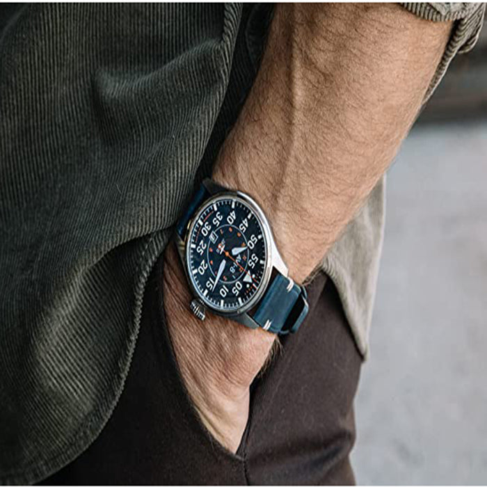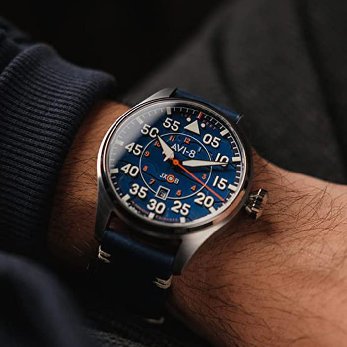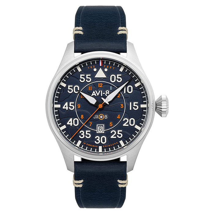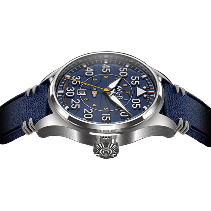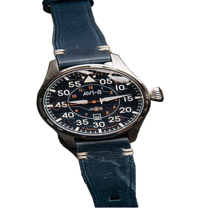 AVI-8 Men's Blue Dial Leather Band Hawker Hurricane Clowes Japanese Automatic Pilot Watch - AV-4097-02