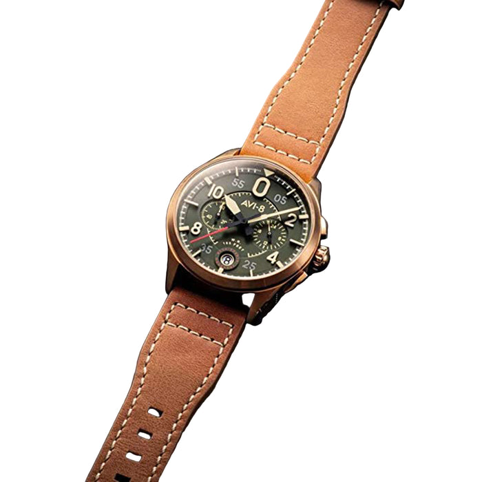 AVI-8 Men's Green Dial Brown Leather Band Chronograph Japanese Quartz Watch