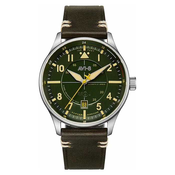 AVI-8 Men's Green Dial Black Leather Band Hawker Hurricane Kent Automatic Watch