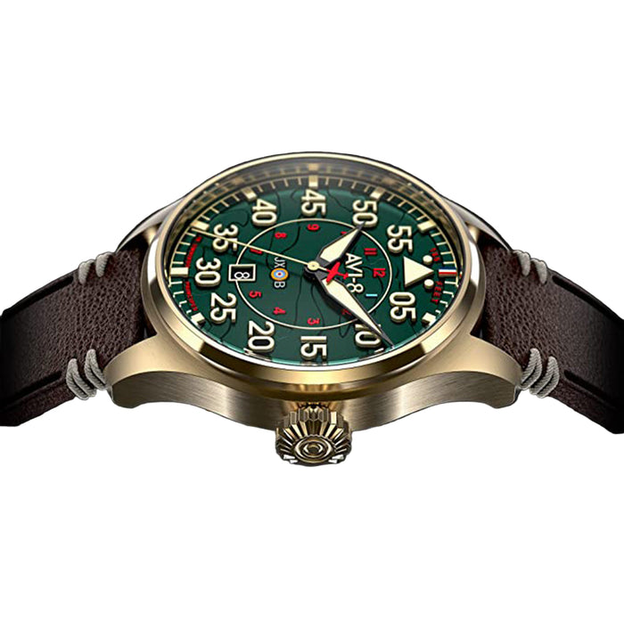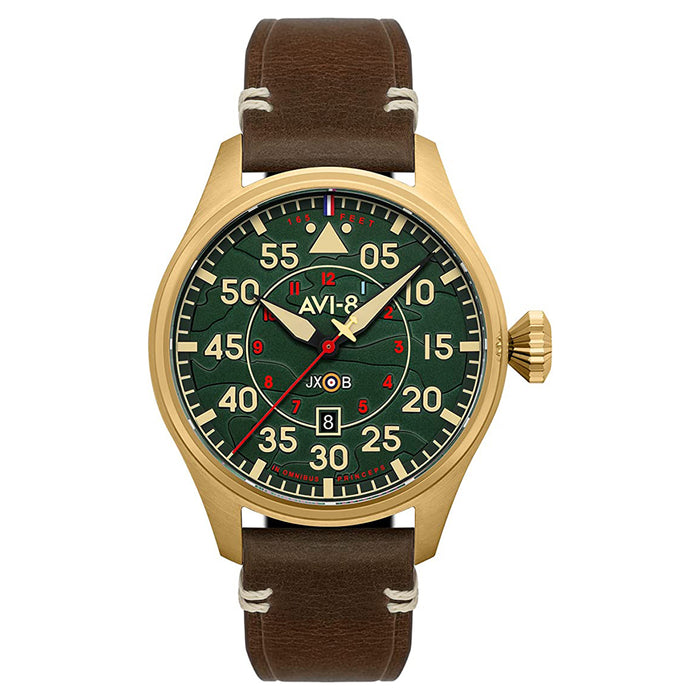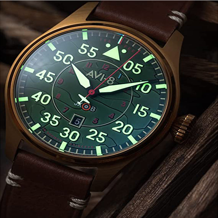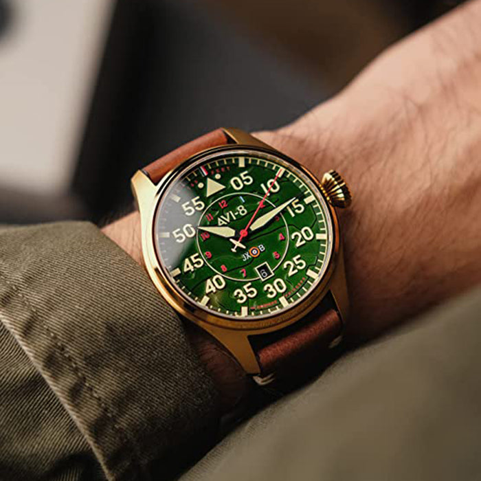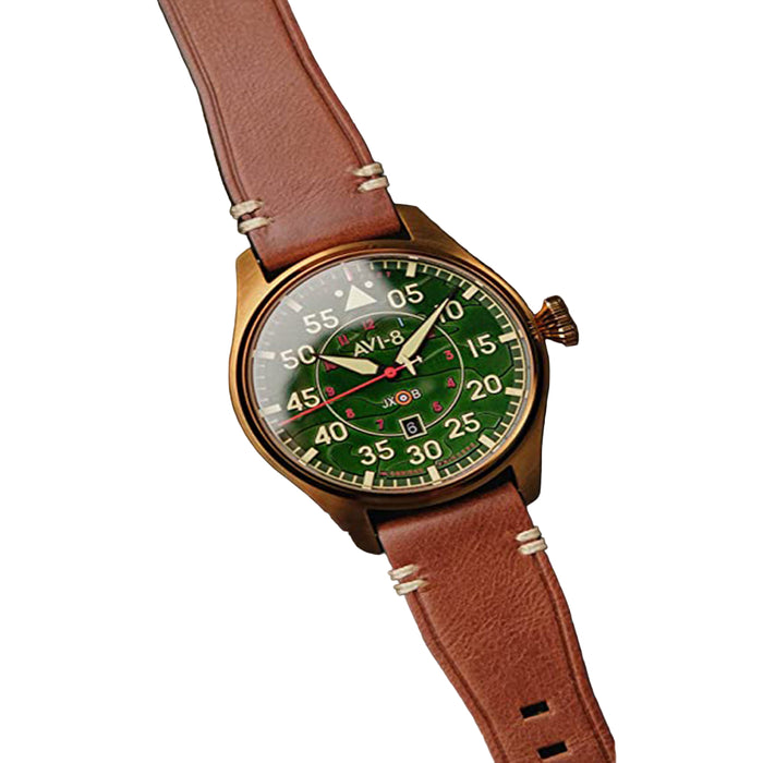 AVI-8 Men's Green Dial Brown Leather Band Hawker Hurricane Clowes Japanese Automatic Pilot Watch - AV-4097-04
