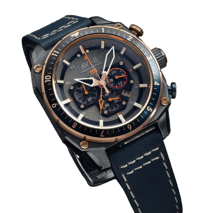 AVI-8 Unisex Grey Dial Blue Leather Band Hawker Hunter Atlas Dual Time Chronograph Analog Japanese Quartz Watch - AV-4100-07