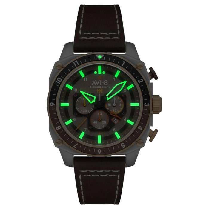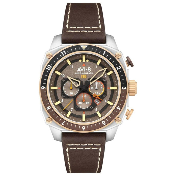 AVI-8 Unisex Grey Dial Brown Leather Band Hawker Hunter Atlas Dual Time Chronograph Analog Japanese Quartz Watch
