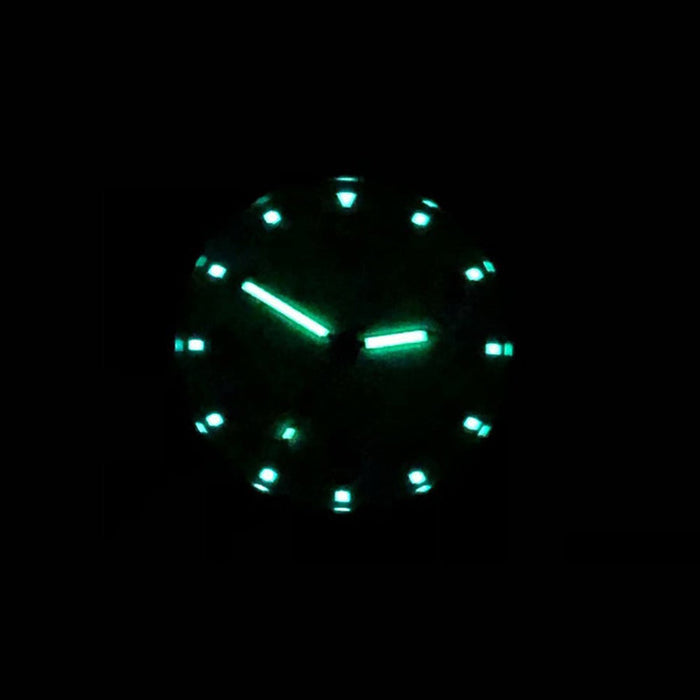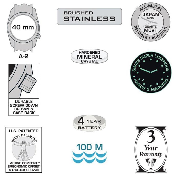 The Bertucci A-11T Americana is our US-style watch, with a military feel and a modernized look. The case is made of stainless steel and a mineral crystal, and waterproof protects the dial up to 100 meters. This watch has a quartz movement that provides accurate timekeeping. The watch strap offers a wide range of bands, including, Black Viberg, and dark brown Horween leather.