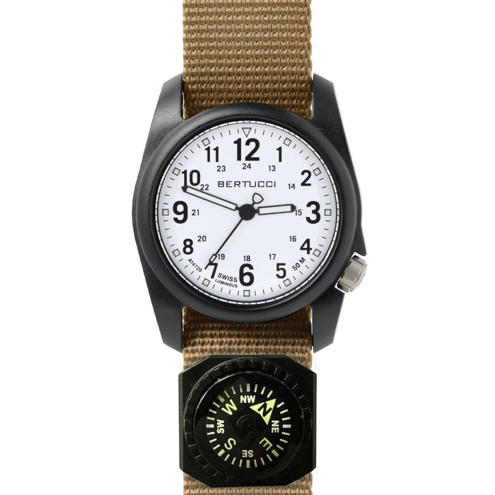 Bertucci Men's White Dial Black Case Coyote Nylon Band Quartz Watch - 11104