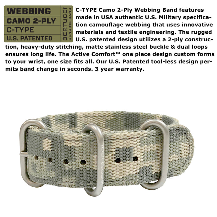 Bertucci DX3® Unisex Stone Dial Nylon Digicam C-Type Camo Webbing Band Japanese Quartz Watch