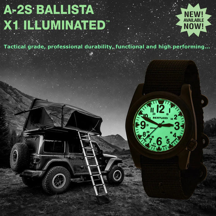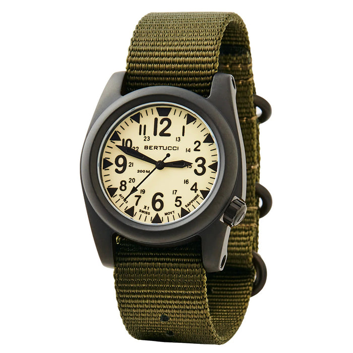 Bertucci A-2S Unisex Ballista X1 Illuminated Luminous Dial Defender Olive Nylon Band Swiss Quartz Watch