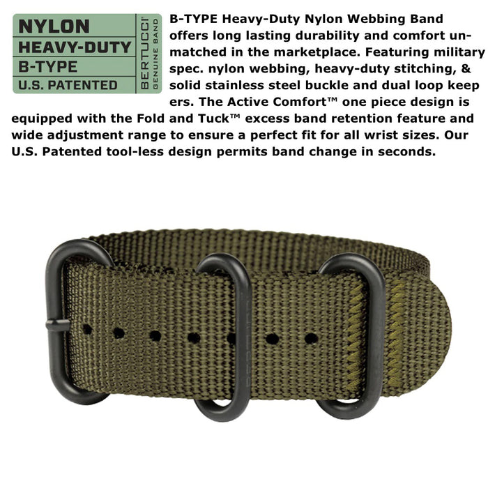 Bertucci A-2S Unisex Ballista X1 Illuminated Luminous Dial Defender Olive Nylon Band Swiss Quartz Watch - 11123