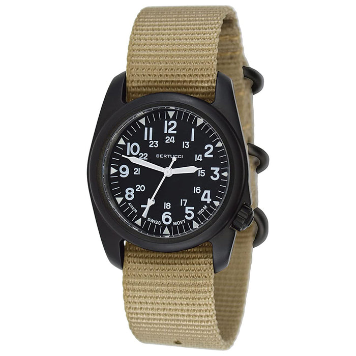 Bertucci A-2S Unisex Vintage Black Dial Defender Khaki Nylon Band Swiss Quartz Watch - 11511