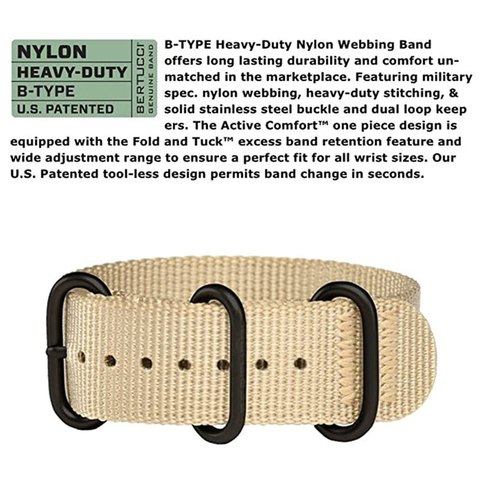 Bertucci A-2t Unisex Black Dial Beige Nylon Band Japanese Quartz Watch - 12029