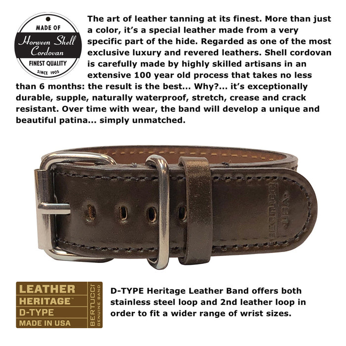 Bertucci Men's A-11T Americana Onyx Black Dial Whiskey Shell Cordovan leather Band Quartz Watch - 13341
