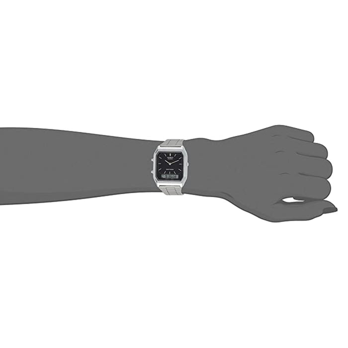 Casio Men's Black Dial Silver Stainless Steel Band Quartz Watch - AQ-230A-1DMQ