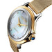 Citizen Women's Eco-Drive Ceci Diamond Accent Mother-of-Pearl Dial Gold Tone Band Stainless Steel Watch - EM0794-54D. From the Citizen Eco-Drive Ceci collection, this ladies' watch features a mother-of-pearl dial with diamond accent markers in a 32.0mm gold-toned stainless steel case. A smooth design with the added accent of a blue spinel cabochon crown. Ensuring accurate time keeping, the Japanese quartz movement keeps you right on time, and the Citizen Eco-Drive® technology harnesses the power of any light source so it never needs a battery. This watch is water-resistant up to 50 meters and secures with a gold-toned mesh stainless steel bracelet and a push button deployment clasp. This watch includes a five-year limited manufacturer warranty, with an additional one-year warranty upon registering your watch with Citizen. We are an authorized Citizen dealer. A contemporary jewellery inspired timepiece, the Citizen Ceci Diamond features 12 beautiful diamonds with a smooth design and a blue spinel cabochon crown. Featured in gold-tone with a mesh bracelet and Mother-of-Pearl dial. Featuring Eco-Drive technology – powered by light, any light. Never needs a battery.
