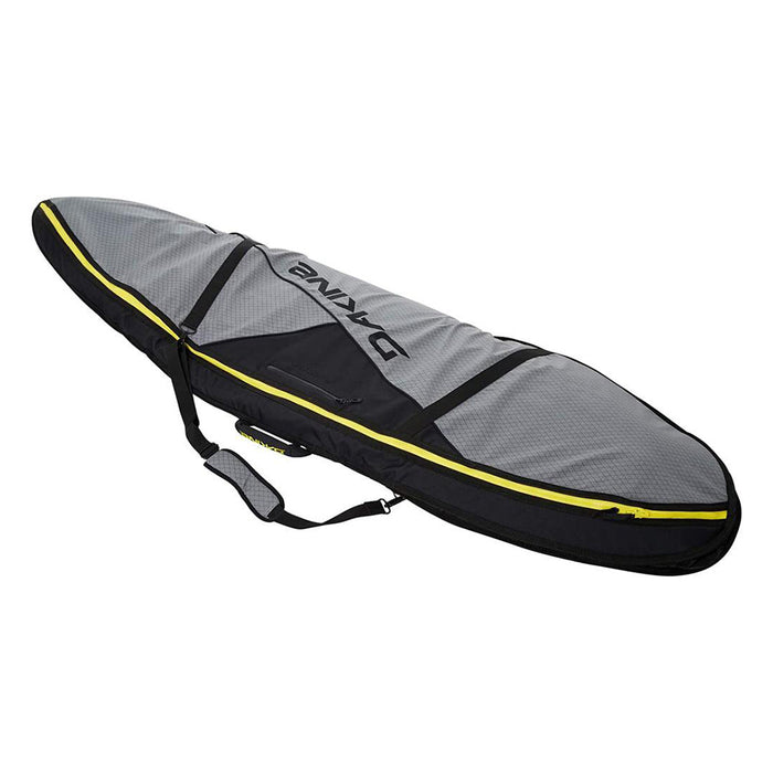 Dakine Unisex Carbon 6'3" Recon Thruster Double Surfboard Bag - 10002307-6.3-THRUSTCARBON. Going on a quick strike? It's always smart to bring a backup board. This surfboard bag is designed for hauling two boards with fins. Durable and lightweight, the bag features dense 3/8-inch padding to guard against dings and a full-length heat shield on the bottom to guard against the sun while exposed on the roof rack. A travel-friendly shoulder strap frees your hands for easy travel transitions.