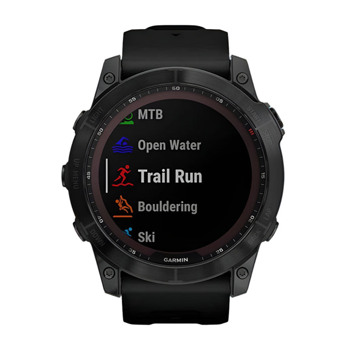 Garmin fenix 7X Sapphire Solar Edition Black DLC Titanium with Black Band Solar Charging Capabilities Rugged Outdoor GPS Touchscreen Smart Watch