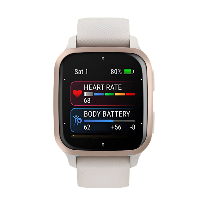 Garmin Venu Sq 2 Peach Gold and Ivory Music Edition All-Day Health Monitoring Long-Lasting Battery Life GPS Smartwatch - 010-02700-01