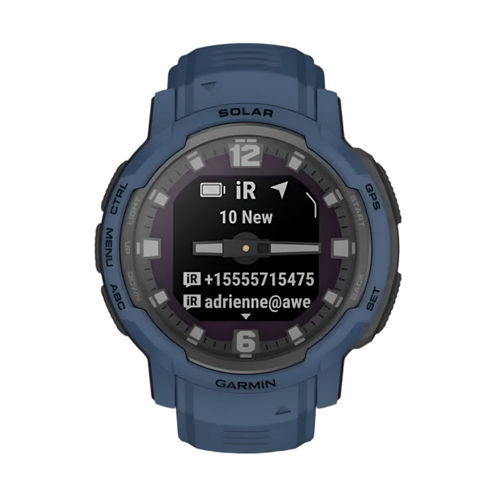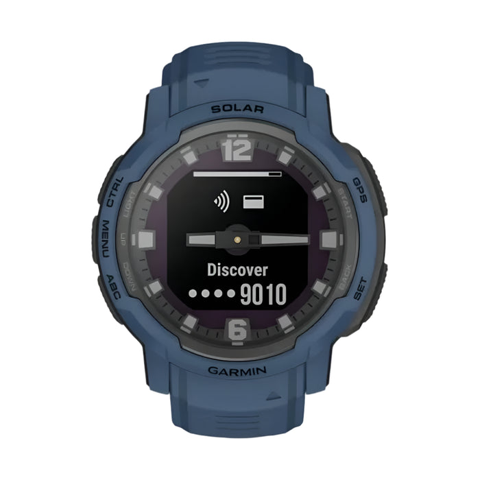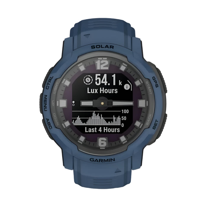 Garmin Instinct Crossover Tidal Blue Silicone Band Solar Charging Capabilities Digital Display Rugged Hybrid Smartwatch - 010-02730-12