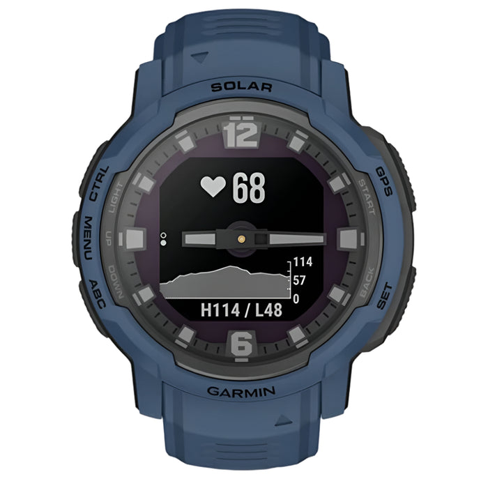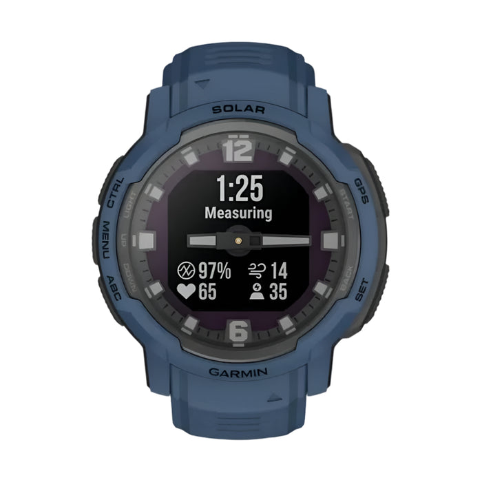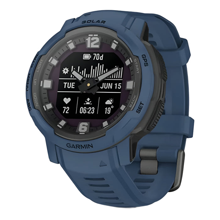 Garmin Instinct Crossover Tidal Blue Silicone Band Solar Charging Capabilities Digital Display Rugged Hybrid Smartwatch