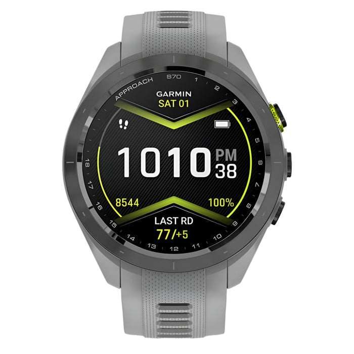 Garmin Approach S70 Black Ceramic Bezel with Powder Gray Silicone Band 42mm Premium GPS Golf Watch - 010-02746-01