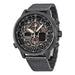 Go where the wind takes you with the Citizen Navihawk A-T. With atomic clock synchronization for superior accuracy this perpetual calendar chronograph receives radio signals both automatically and on-demand in North America the United Kingdom Europe Japan and China. The Navihawk A-T ensures you are always on time no matter where your journey takes you. The grey-tone stainless steel case and mesh bracelet with black dial features world time in 43 cities 2 alarms 1/100-second chronograph 99-minute countdown timer UTC display power reserve indicator hand correction and shock sensing function.