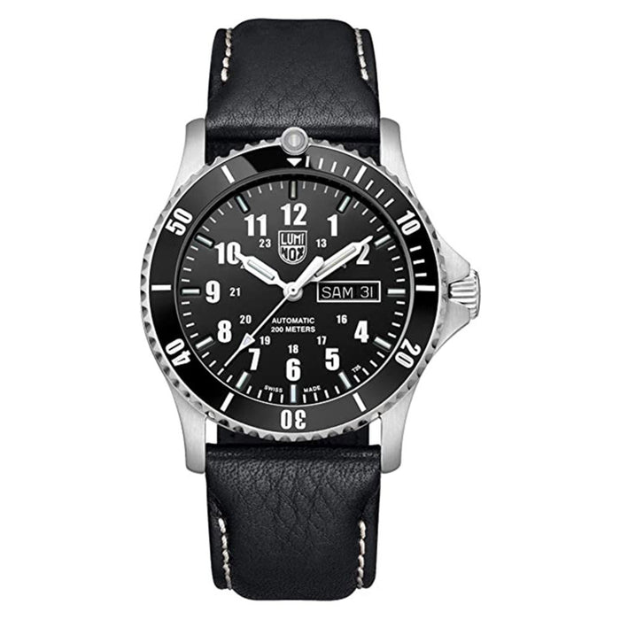 Gents looking for a watch of unmatchable quality will not want to be without this Luminox timepiece. This stainless steel watch is strict but has an appealing aesthetic. The self-winding movement in the watch is outstanding and makes it a diver's watch with a 42-mm case. Its black dial contains the following complications: day, date, central 60-second hand. Make sure your watch does more than tell you the timeโit looks good too.