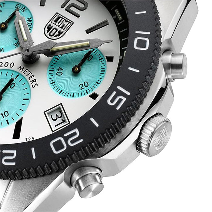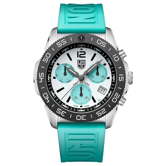 Luminox Men's White Dial Turquoise Silicone Band Pacific Diver Chronograph Quartz Watch - XS.3143.1