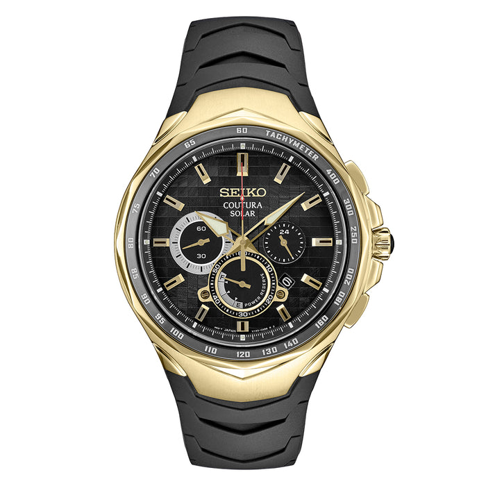 SEIKO Men's Coutura Black Dial Silicone Strap Solar Chronograph Watch - SSC810